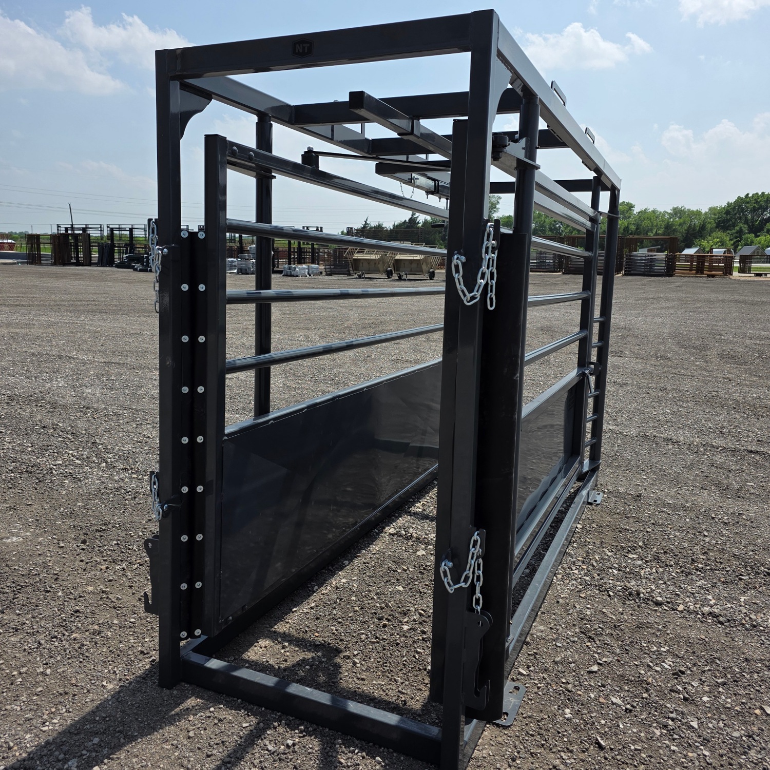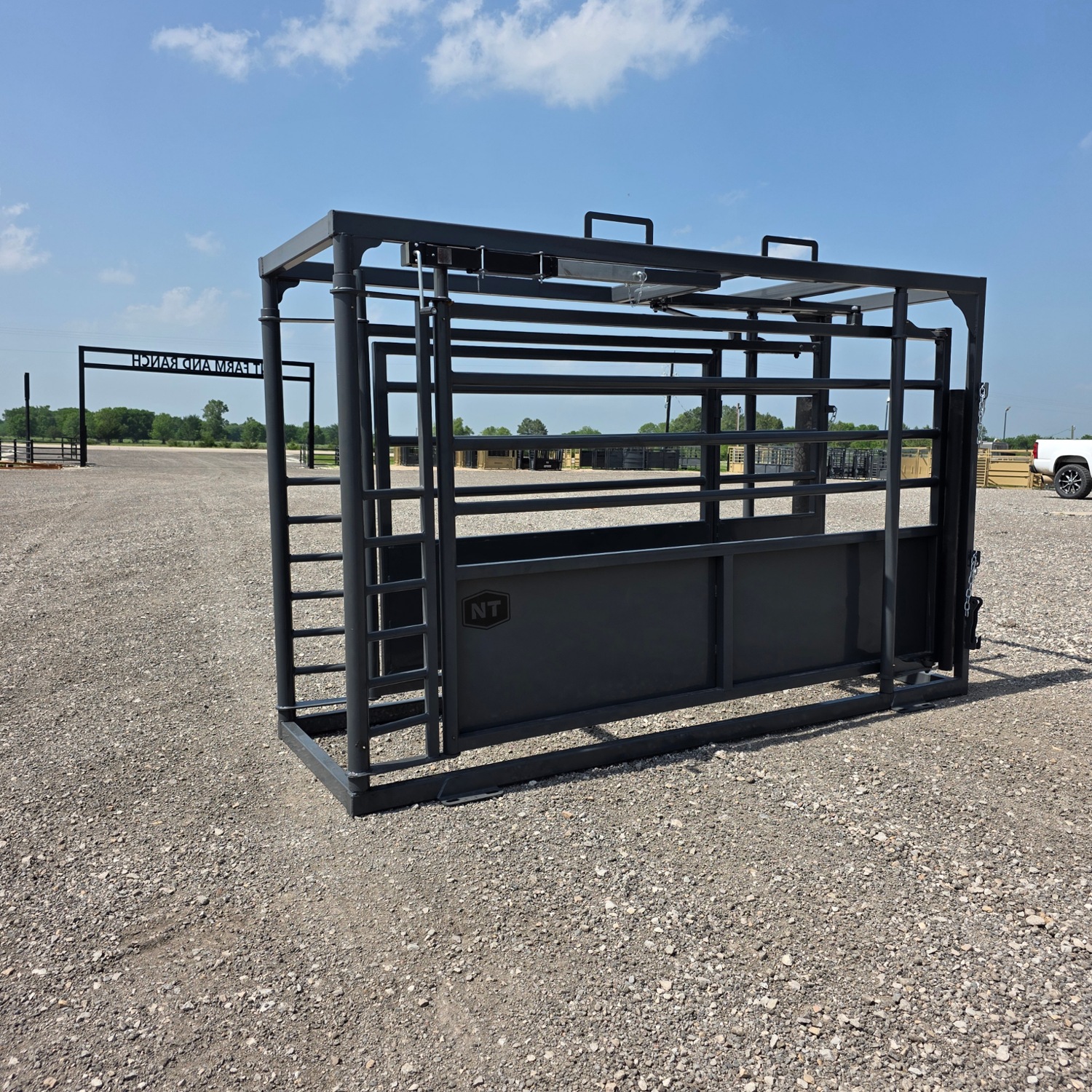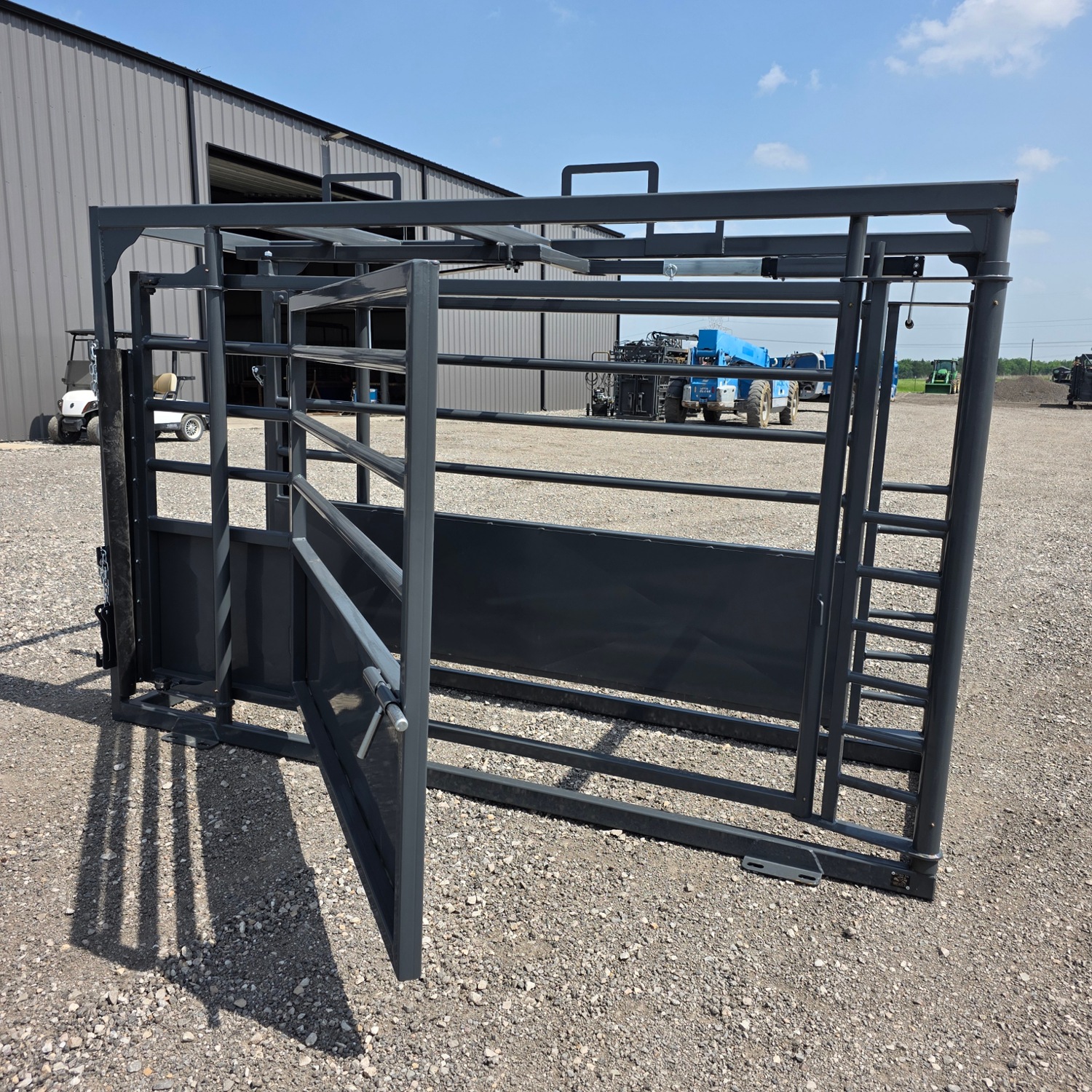 This 10′ adjustable alleyway offers smooth, controlled livestock handling with a 29.5 inch wide opening that squeezes down to 10 inches. It includes a convenient side-exit gate and a durable powder-coat finish.