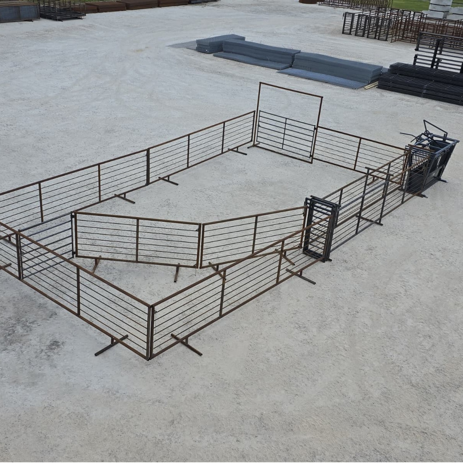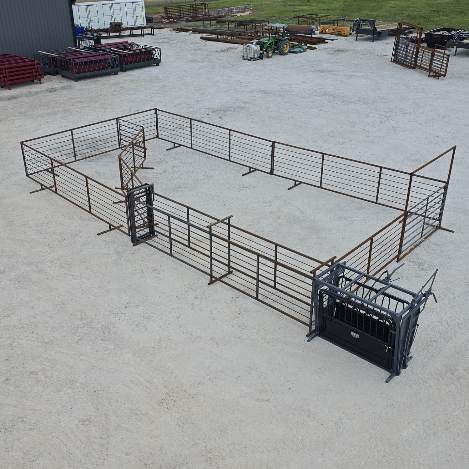 Build a durable and functional corral system with this ready-to-go 24′ x 48′ package. It includes the COYOTE Squeeze Chute for secure animal handling , and all the essential panels and gates you need for an efficient livestock enclosure.
